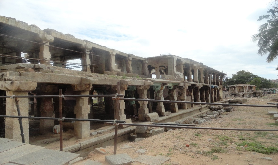 23 | Virupaksha Temple South of Bazar at Hampi (2019-20) | Careful earth work excavation to expose the ancient working level, Dismantling and restoration of the out of plumb, roof slabs, beam, capital, pillars etc., (work to be attended) | Work is in Progress |