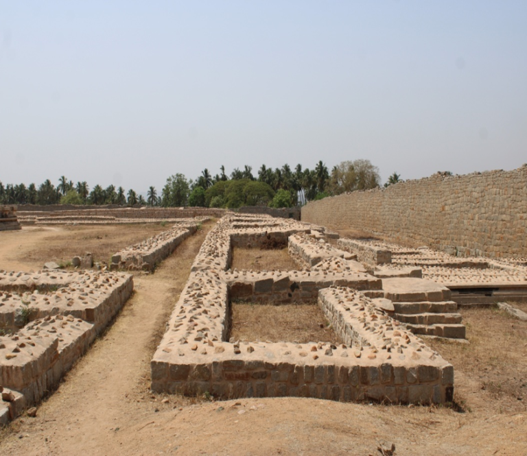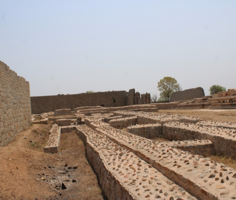 | 4 | Excavated Remains to Shri Krishnadevaraya Palace at Kamalapur | Restoration of fallen structural remains, coping with lime mortar, pointing the stone joints, Laying lime concrete as per old available clues* | Work Completed |