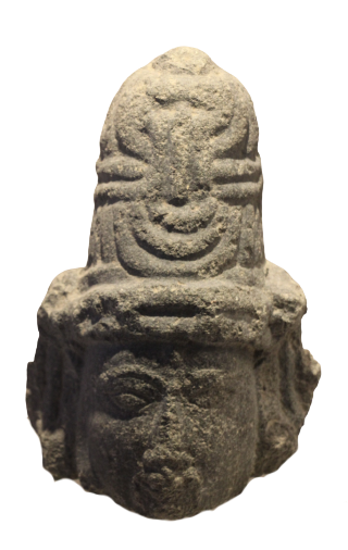 Head of Shiva wearing Jatamukuta (matted crown). The ears are broken. Face is chipped off.