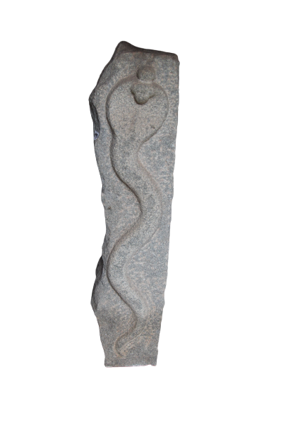 A huge granite slab representing a single hooded Naga carved in bold relief.